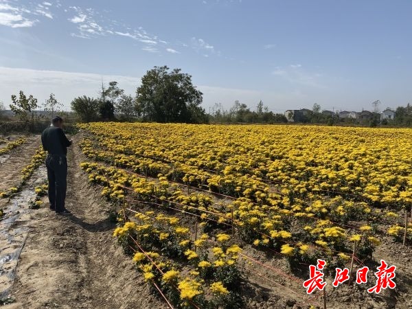 2019年开始,武昌区委老干部局、武昌区总工会、武昌区站前综合治理办公室联合拨付扶贫资金35万元,用于发展菊花种植产业,目前流转土地12亩。长塘村引进的“黄金菊”是最新培育出来的新品种,长势好、花朵大、色泽鲜艳。今年11月,第一批菊花将采摘下来进入烤房。这几日,驻村第一书记山长春睡不好觉,他告诉长江日报-长江网记者:“一旦菊花没有照护好,落了地,心血就白费了。”不过,他对未来菊花产业大有信心:“明年应该能扩大养殖面积。”