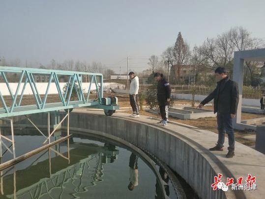 市生态环境局新洲区分局生态科负责人朱方在沉淀池,将一根长木棍深入水中,两米之内清晰可见。他介绍,出水可达一级A标准。