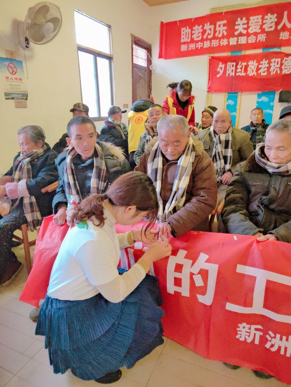 20日上午10时许,记者在杨山福利院看到,30名志愿者从四面八方来到福利院后,分头到各个房间为老人打扫卫生、剪指甲,一部分志愿者来到食堂为老人包起了饺子,紧接着全体志愿者来到福利院活动中心,为老人互动游戏、表演文艺节目,活动结果后,30名志愿者分别为老人系上自己买来彴围巾和送上食品大礼包。