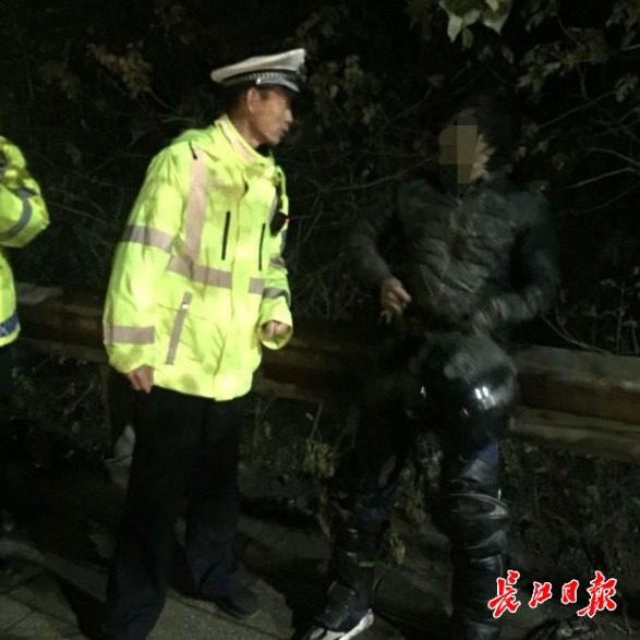 长江日报-长江网12月18日讯(通讯员李鹏程 记者戴旻阳)雨夜路滑,男子骑摩托车摔倒晕厥,好心跟车司机打开双闪护航,直到民警和救护车赶到。17日晚,在江夏宁安路上演感人一幕。