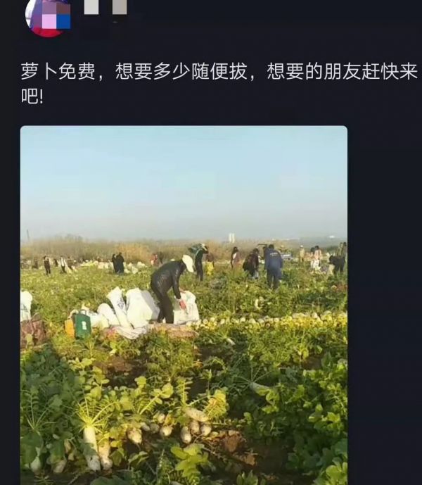 这些人为什么会突然跑到这里来薅萝卜?高女士对长江日报-长江网记者说:这些人自称在网上看到消息,专门来采摘免费萝卜。