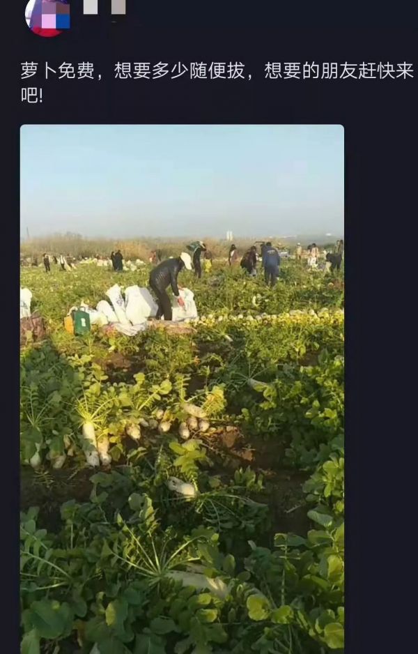 这些萝卜是不是有残留、卖不出去,才放出消息让人免费薅?
