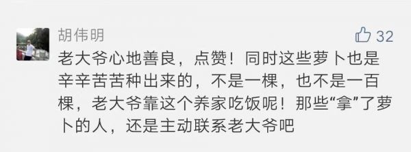 长江日报报道之后,众多网友留言,表示菜农不易,免费拔萝卜的人无论事前是否知情,应该将萝卜钱补还给菜农。